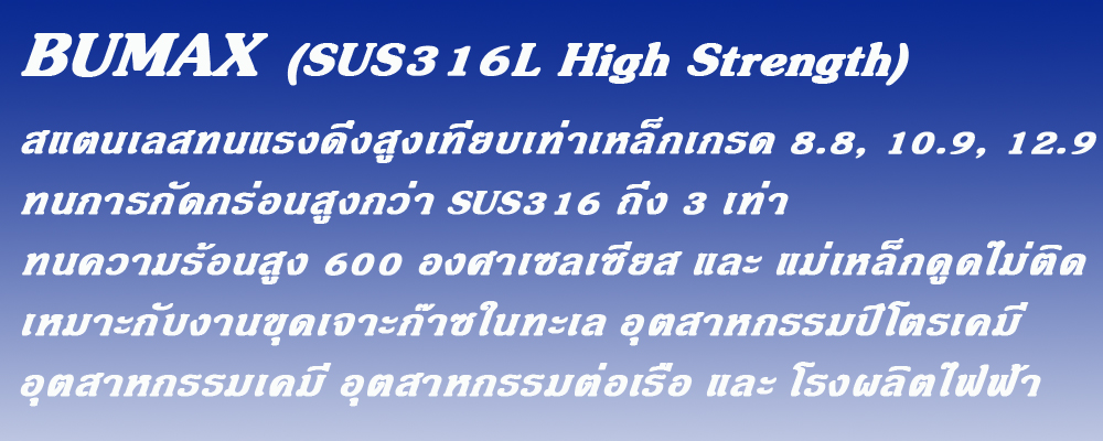 SUS310S SUS316 SUS316L SUS317L SUS321 SUS329J4L SUS403 SUS405 SUS410 SUS420 SUS420J2 SUS430 SUS440C SUS550 SUS630 SUSXM7 A2-70 A2-80 A2-100 A4-70 A4-80 A4-100 BUMAX88 BUMAX109 BUMAX129